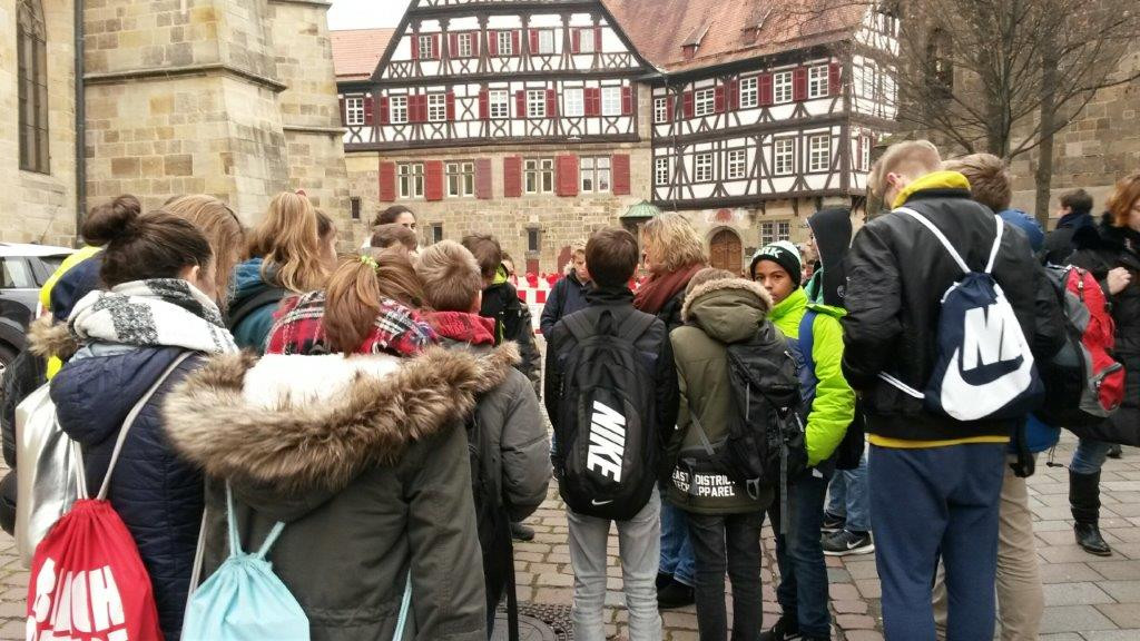 Am 14. Dezember waren die Klassen 7a und 7d mit den Lehrern Frau Stuber und Frau Höfer nach Esslingen gefahren. Dort erhielten sie Führungen zum Thema „Mittelalter in Esslingen“. Während dieser Stunde haben sie erfahren, dass Esslingen damals eine wichtige Handelsstadt war. Außerdem wurden Redewendungen erklärt, welche aus dem Mittelalter stammen. Eine der Redewendungen war „Halt die Klappe“, die eigentlich aus der Kirche kommt. Auch damals suchten die Einwohner im Mittelalter in Kirchen Schutz.