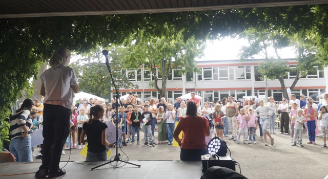Am letzten Schultag versammelten sich die Schüler- und Lehrerschaft zu einer besonderen Aktion gegen Rassismus – gekrönt von einer süßen Überraschung des Elternbeirats und einem emotionalen Abschluss.