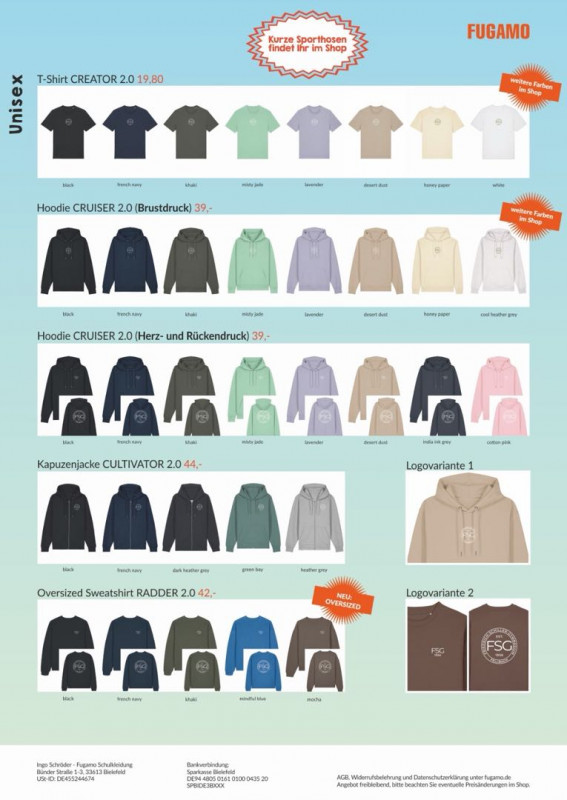 Die neue Kollektion der Schoolwear ist da, mit neuen Farben und einem neuen Print! Schlagt zu!!!