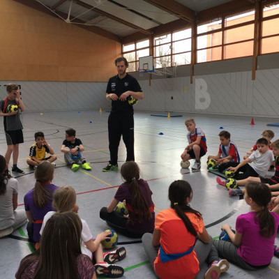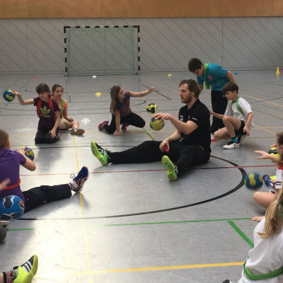 Mit prominentem Gast trainieren durften unsere Schülerinnen und Schüler der Klasse 5b am 14. März im Sportunterricht. Felix Lobedank des Bundesligisten TVB Stuttgart motivierte eine Doppelstunde lang im Rahmen der Unterrichtseinheit Handball mit einer maßgeschneiderten Trainingseinheit.