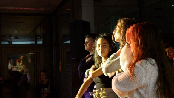Am letzten Abend haben sich die deutsch-französischen Pärchen mächtig ins Zeug gelegt, um im Rahmen des Bunten Abends am GSG auf der Bühne einen gemeinsamen Beitrag zu präsentieren: Es wurde viel gesungen, musiziert, getanzt, rezitiert und gelacht.