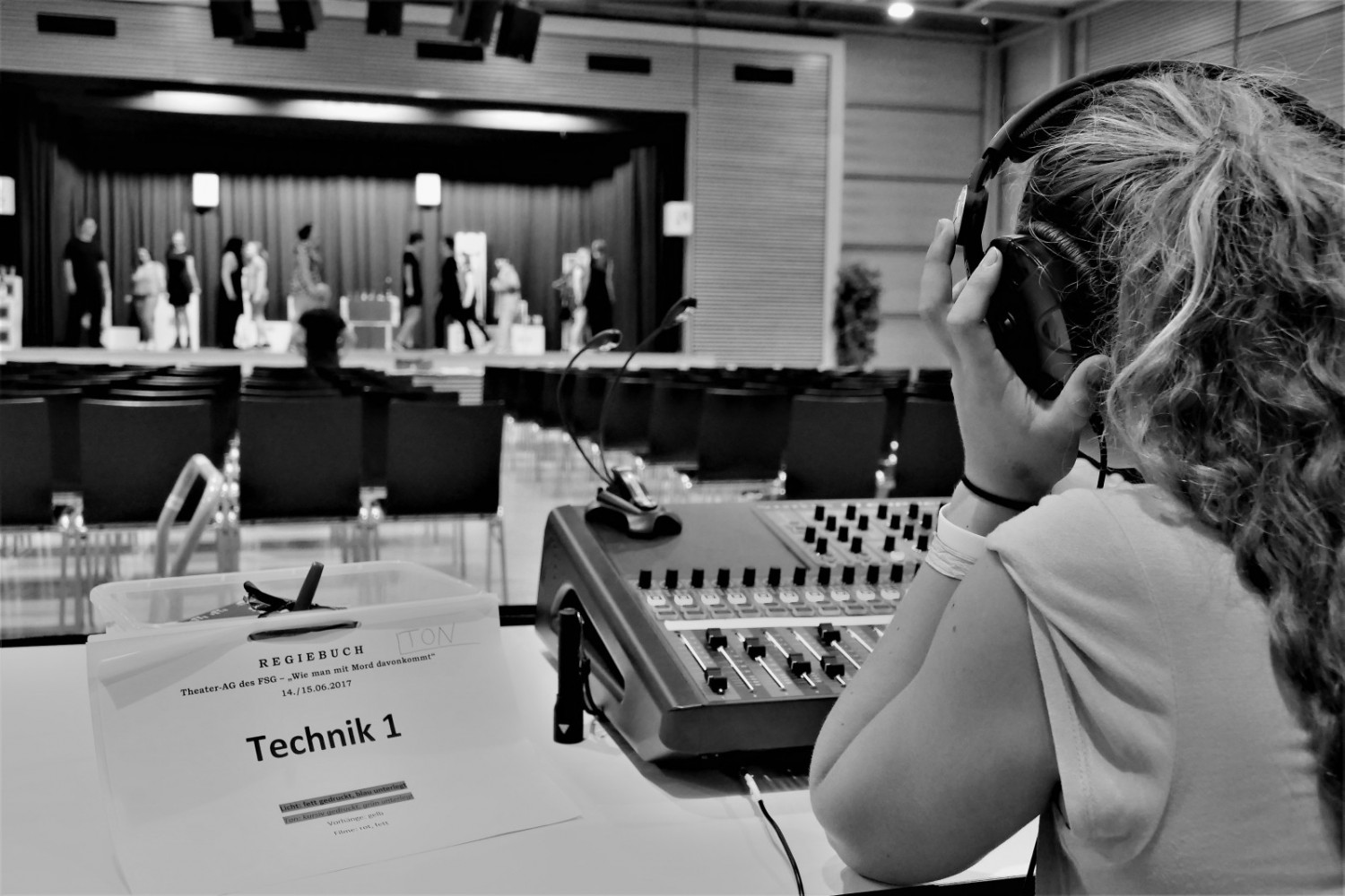 Die Theater-AG des FSG Fellbach ist den Fragen um persönliche Verletzungen und Selbstjustiz nachgegangen und hat ein eigenes Stück geschrieben, das am 14. und 15. Juni 2018 zur Aufführung kam. Das Publikum durfte entscheiden, den Mörder verurteilen und verhaften lassen. – Ob es damit richtig lag, blieb offen! Genauso wie die Frage, ob Selbstjustiz der richtige Weg ist oder ob man damit nicht neue Schuld auf sich lädt.