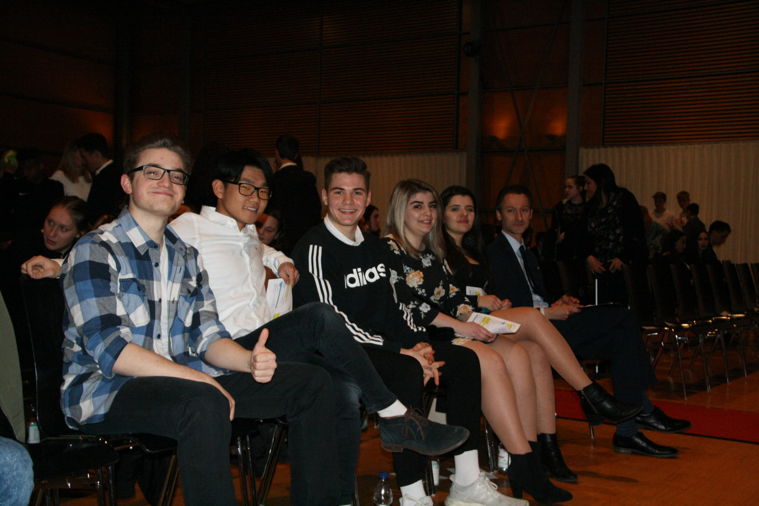 Wir bedanken uns für die Unterstützung bei den K2 Schülerinnen und Schüler, die als Moderatoren und in der Jury tätig waren, bei der Technik-AG, bei der Jury (insbesondere beim Dr. Massimo Darchini, Generalkonsul Italiens, sowie bei Martin Hübsch, Simon Zhang und Lorenzo Nagel von der Hochschule der Medien), beim Herrn Francesco Santoro vom Centro Italiano Fellbach für die tollen Autos. Ein großer Dank geht an den Elternbeirat für die finanzielle Unterstützung.