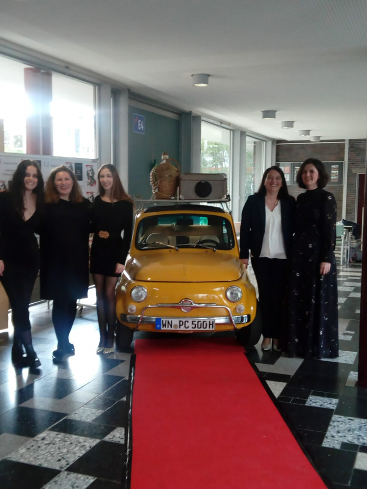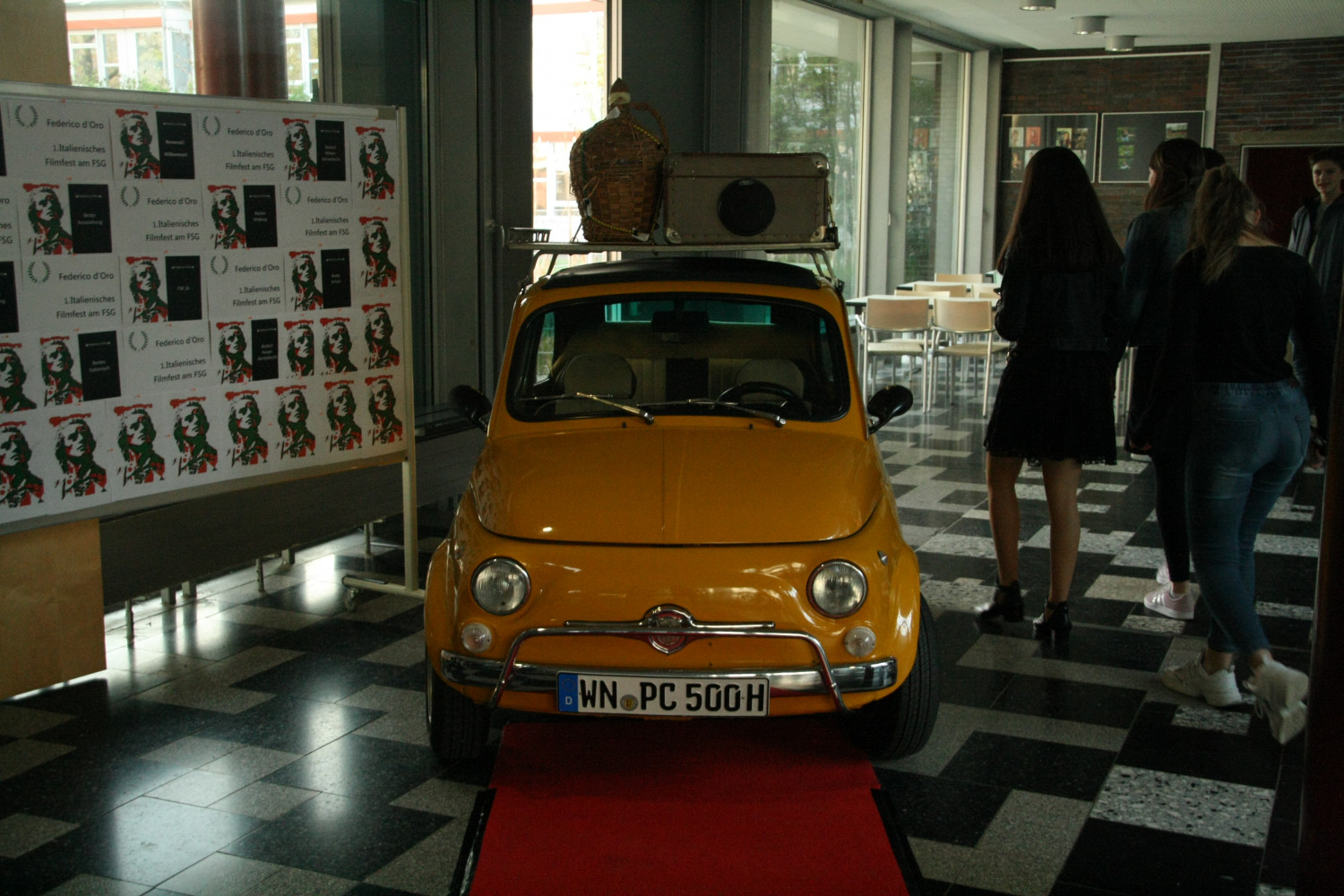Ein gelber Cinquecento in der Cafeteria, strahlende Schülergesichter in der Aula, glamouröse Outfits auf dem roten Teppich, eine Limousine auf dem Schulhof, unzählbare VIPs (unter ihnen der italienische Generalkonsul),  junge Filmexperten aus der Hochschule der Medien in Stuttgart in der Jury, der hochemotionale Live-Act einer talentierten Sängerin: das sind nur einige Eindrücke vom „Federico d’Oro“, dem ersten italienischen Filmfestival am FSG.