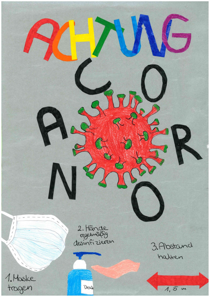 Die Siebener sind informiert und haben sich darüber Gedanken gemacht, wie man alle Schülerinnen und Schüler vor dem Betreten der Schule über die Ansteckungsgefahr des Corona-Virus und die Verhaltensregeln aufklären kann. Entstanden ist eine Corona-Plakatserie.