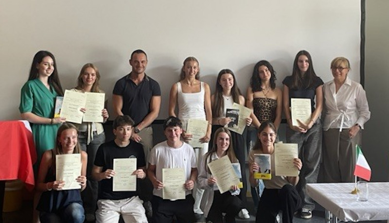 Am 26.06 ging es für einige Schülerinnen, Frau Arbia und Frau Spilok nach Nürtingen zum Finale und der Preisverleihung des „Racconto d'Autrice 2025“, welches aus zwei Wettbewerben, einem Vorlese- und einem Schreibwettbewerb, besteht. Im Finale des Schreibwettbewerbs waren vier Schülerinnen der J1, und zwar Alina Trommer, Marlene Sonntag, Matilda Grazzini und Claudia-Maria Ippolito. Alina hat den zweiten Platz erreicht! Ich, Dana aus der 8c, war im Finale des Vorlesewettbewerbes.