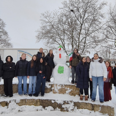 Auch die anderen Klassen hatten kluge Strategien. Das zeigt zum Beispiel der italienische Schneemann der Mädchen und Jungs der Klasse 8c. Er war ausgestattet mit farblich passender Kleidung und einer italienischen Flagge in der Hand. Sogar an ein Sixpack hat die Klasse gedacht, damit ihr Schneemann auch wirklich der schönste war.