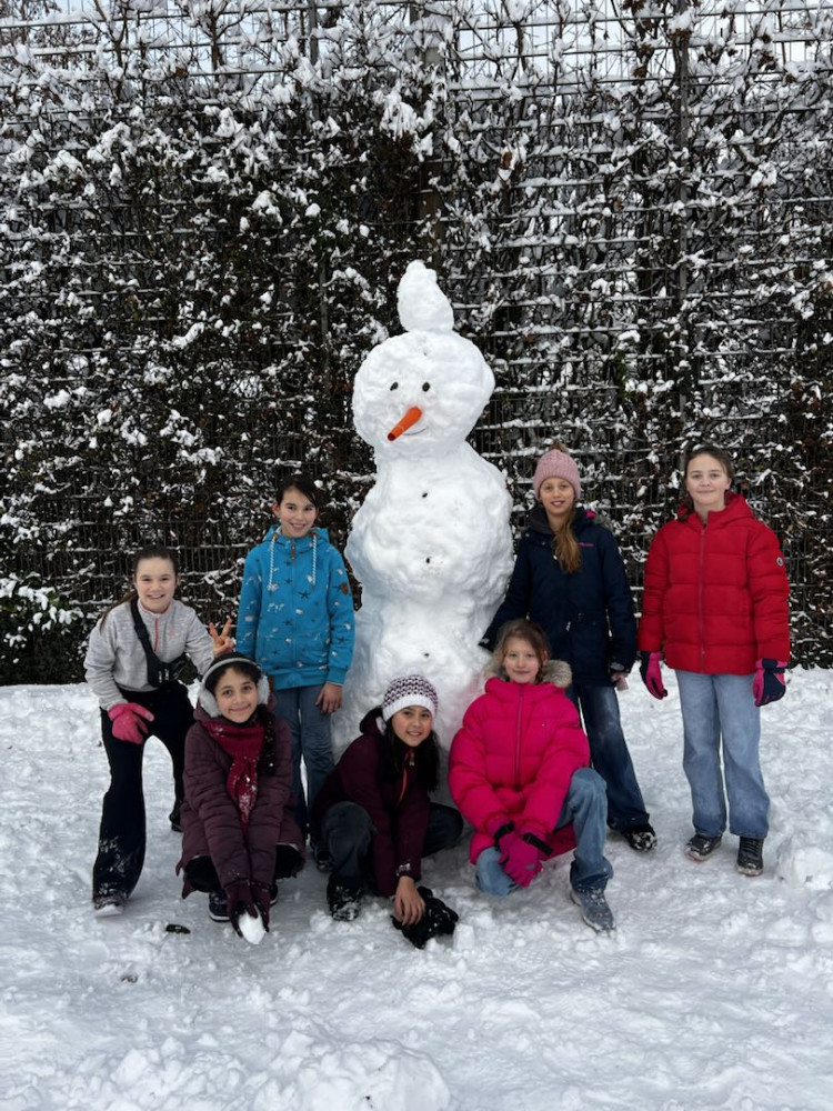 Der Schneesturm hat in der Nacht auf Montag für Chaos im Verkehr gesorgt und damit auch den Schulweg vieler Schüler und Lehrer erschwert. Aber es ist nicht alles schlecht, denn bei den Unmengen Schnee kann man wunderbar Schneemänner bauen. Diese Chance muss man natürlich nutzen. Gut also, dass unser Schulleiter Herr Brack das genauso sieht!