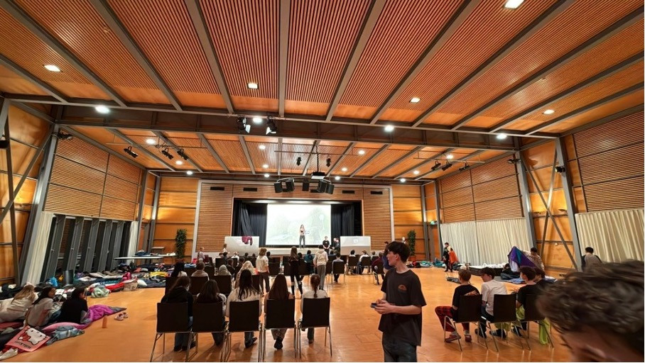 Für diese Übernachtung hat die SMV ein weitreichendes Programm an Aktionen organisiert. Wobei sich die Schülerinnen und Schüler der Klassen 5-6 Challenges wie einem Parkour in der Neuen Halle oder Karaoke singen in der Aula stellen konnten.