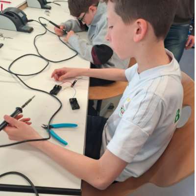 Am 26.03.2026 ging es für uns Mkid´s in die Gmünder Wissenswerkstatt Eule. Nach einer kurzen Runde Tischtennis starteten wir mit unserem Projekt und begannen, eigene Bluetooth-Lautsprecher zu bauen. Zuerst leimten wir die Holzplatten für den Rahmen zusammen. Danach löteten wir die Elektronik. Anschließend bohrten wir die nötigen Löcher und schraubten am Ende alles fest. Besonders cool war, dass wir verschieden farbige Frontplatten auswählen konnten, so dass jeder Lautsprecher individuell gestaltet war.