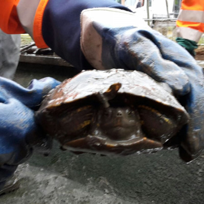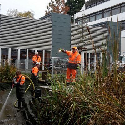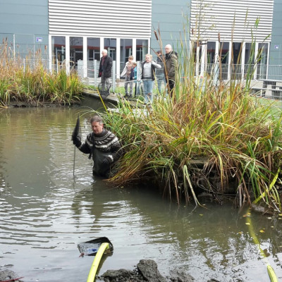Große Mengen an Faulschlamm wurden abgesaugt und Müll entsorgt, der in den Teich geworfen worden war - unter anderem ganze Metallmülleimer, eine Gießkanne und anderes.