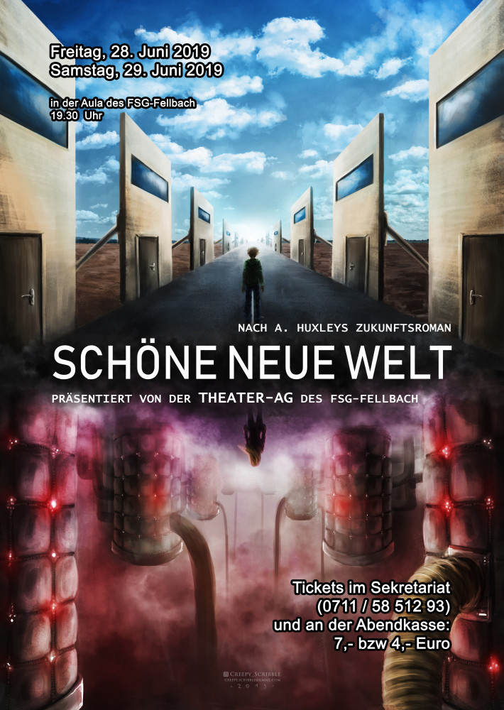 Nach einem Jahr Proben ist es endlich so weit, heute und morgen könnt ihr in der Aula das Stück  Schöne neue Welt  erleben.