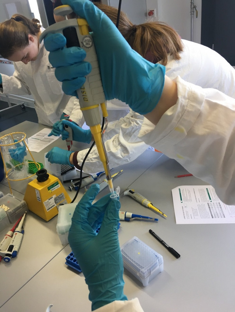 Zwischen Kriminalgeschichten und Grundlagen der angewandten Genetik lernten die Schülerinnen und Schüler anschaulich das Isolieren von Plasmiden aus Bakterien und die Vervielfältigung sowie Sequenzierung von DNA mittels Gelelektrophorese kennen. Als Kriminalisten deckten die Schüler des 4-stündigen Biologiekurses den Täter eines Juwelendiebstahls auf und ermittelten anschließend die bakterielle Ursache für den Tod eines Krankenhauspatienten.