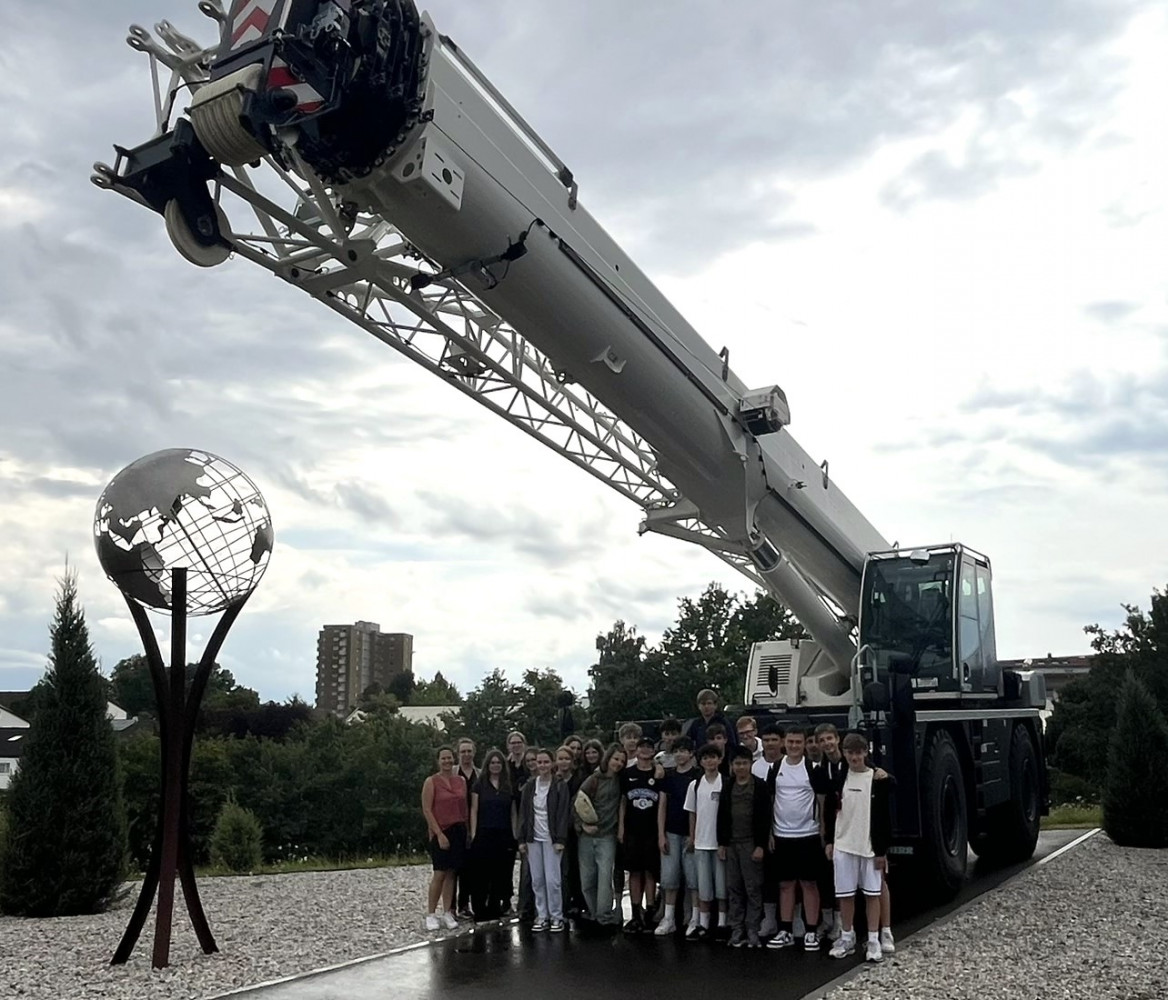 Am Dienstag, den 15.07.2025, sind wir, die Klasse 8c, Frau Riedel und Frau Tscheschner nach Ehingen gefahren, um das Werk von Liebherr zu besichtigen, weil wir in NwT das Unterrichtsthema Kranbau hatten. Liebherr baut große Mobil- und Raupenkrane, leistungsstarke Bagger und andere schwere Maschinen, die auf Baustellen und in Minen schwere Lasten heben und transportieren können.