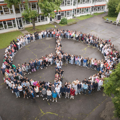 Mit einem eindrucksvollen Zeichen endete das Schuljahr 2024/25 am Friedrich-Schiller-Gymnasium Fellbach. Am Morgen des letzten Schultags versammelten sich hunderte Schülerinnen, Schüler und Lehrkräfte auf dem Schulhof, um gemeinsam ein riesiges Peace-Zeichen zu formen – ein klares Statement im Rahmen der Initiative „Schule ohne Rassismus – Schule mit Courage“.