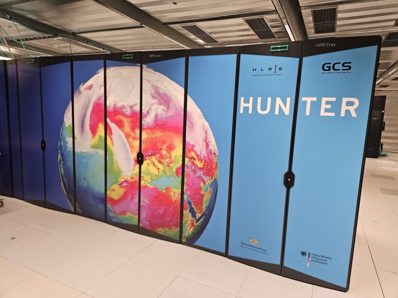 In beiden Bereichen bekamen wir eine interessante Führung. In der CAVE schauten wir uns verschiedene, vergangene Projekte des HLRS an. Darunter war eine Visualisierung des Wetters über Stuttgart mit einer realistischen Darstellung Stuttgarts mithilfe von Drohnentechnik. Im anderen Bereich bekamen wir den recht neuen Supercomputer „Hunter“ zu sehen. Es wurde erklärt, wie und wo die Daten gesichert werden und wie Hunter aufgebaut ist.