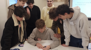 Nach einer Pause, während der die 10b in einem Aufenthaltsraum Tischkicker spielte, sich auf Sitzkissen entspannte, Musik hörte und Kunstwerke bewunderte, ging es mit einem Vortrag weiter. Nachdem uns im ersten Teil vor allem die nicht zu unterschätzenden Gefahren von populistischen Aussagen bewusst wurden, zeigte der Vortrag aber auch Chancen, wie Populismus den demokratischen Diskurs bspw. durch das Vereinfachen und Aufmerksammachen auf bestimmte Problemen unterstützen kann. Der Vortrag endete mit einem Appell daran, selbst nicht still zu bleiben, sondern „Stopp“ zu sagen, wenn dies nötig ist.