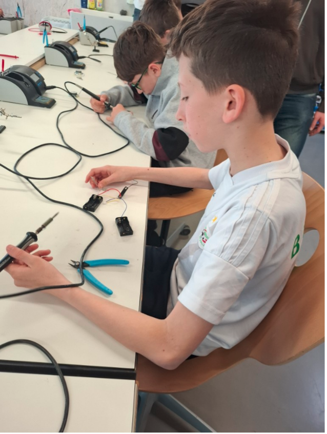 Am 26.03.2026 ging es für uns Mkid´s in die Gmünder Wissenswerkstatt Eule. Nach einer kurzen Runde Tischtennis starteten wir mit unserem Projekt und begannen, eigene Bluetooth-Lautsprecher zu bauen. Zuerst leimten wir die Holzplatten für den Rahmen zusammen. Danach löteten wir die Elektronik. Anschließend bohrten wir die nötigen Löcher und schraubten am Ende alles fest. Besonders cool war, dass wir verschieden farbige Frontplatten auswählen konnten, so dass jeder Lautsprecher individuell gestaltet war.