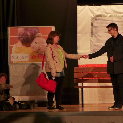 „Passengers", eine Produktion der Theater-AG am FSG, nahm uns im Juli 2014 mit an den Sammelpunkt der Schicksale und Biografien, der Ankunft und Abschied, Verweilen und Vorbeigehen zugleich bedeutet. Wir beobachteten mit den Dichtern Denise Bonal und Kurt Tucholsky, blickten durch ihre und unsere Augen in einzelne und Millionengesichter.