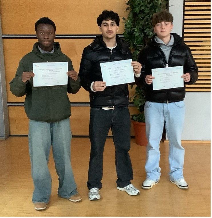 Im Januar 2026 konnten die jetzigen J1-Schülerinnen und -Schüler ihre Diplome in Empfang nehmen und verfügen damit über ein weltweit anerkanntes und lebenslang gültiges Sprachdiplom in Französisch.
